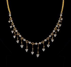 A diamond necklace is a type of jewelry that features a chain adorned with diamonds, often set in a pendant or clasp. Diamond necklaces can vary in style, design, and price, depending on factors such as the quality and size of the diamonds, the type of metal used, and the craftsmanship involved.
