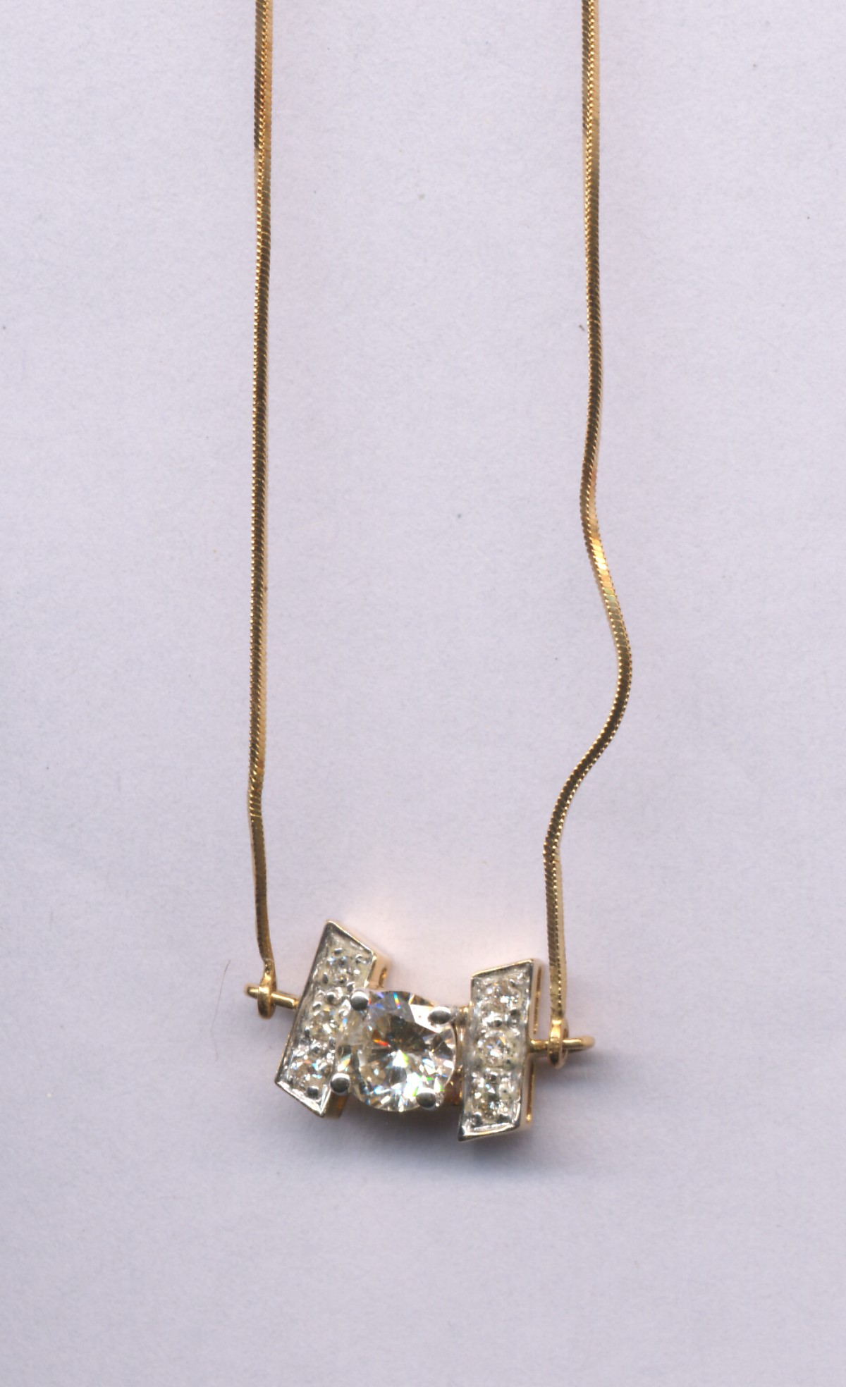 Beautiful 18 Kt Gold Solitaire Natural Diamond Pendant Chain