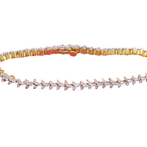 This Bracelet has been adorned with Natural diamonds This Bracelet made in 18kt Yellow Gold & Diamond carat 1.67 CTs,& Diamond Pcs 156 , Gold Wt-9.85 Grams , Diamond color G-H With clarity I Diamond has been verified by International Laboratory- EGL ,Perfect Gift for partner - Gift for Her- Ideal for Proposal Wedding and Anniversary gift for someone you LOVE