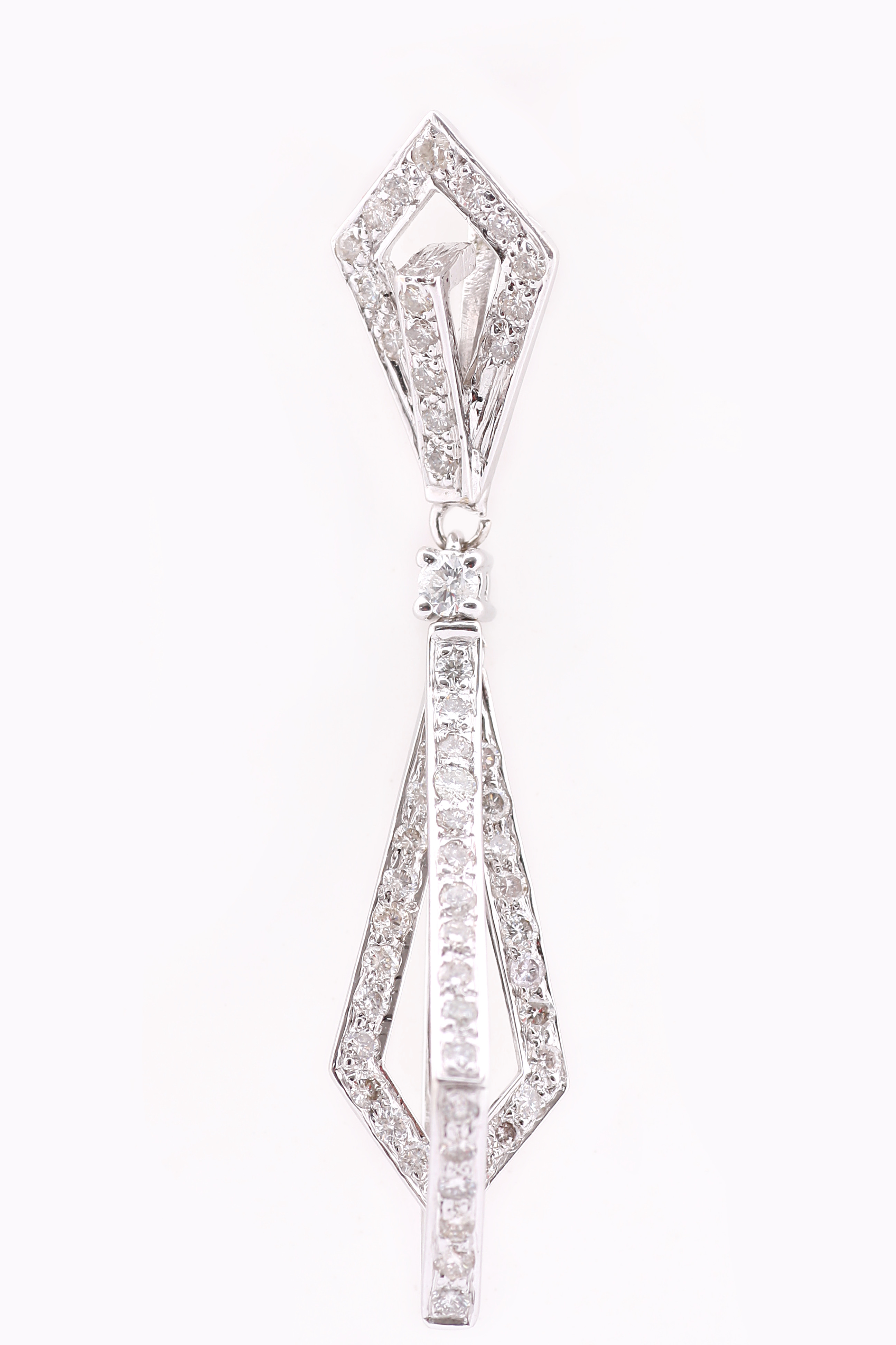 This Pendant made in 18kt White Gold & Diamond carat 0.85 CTS,& Diamond Pcs 58 , Gold Wt-4.20 GMS , Diamond color I With clarity I.