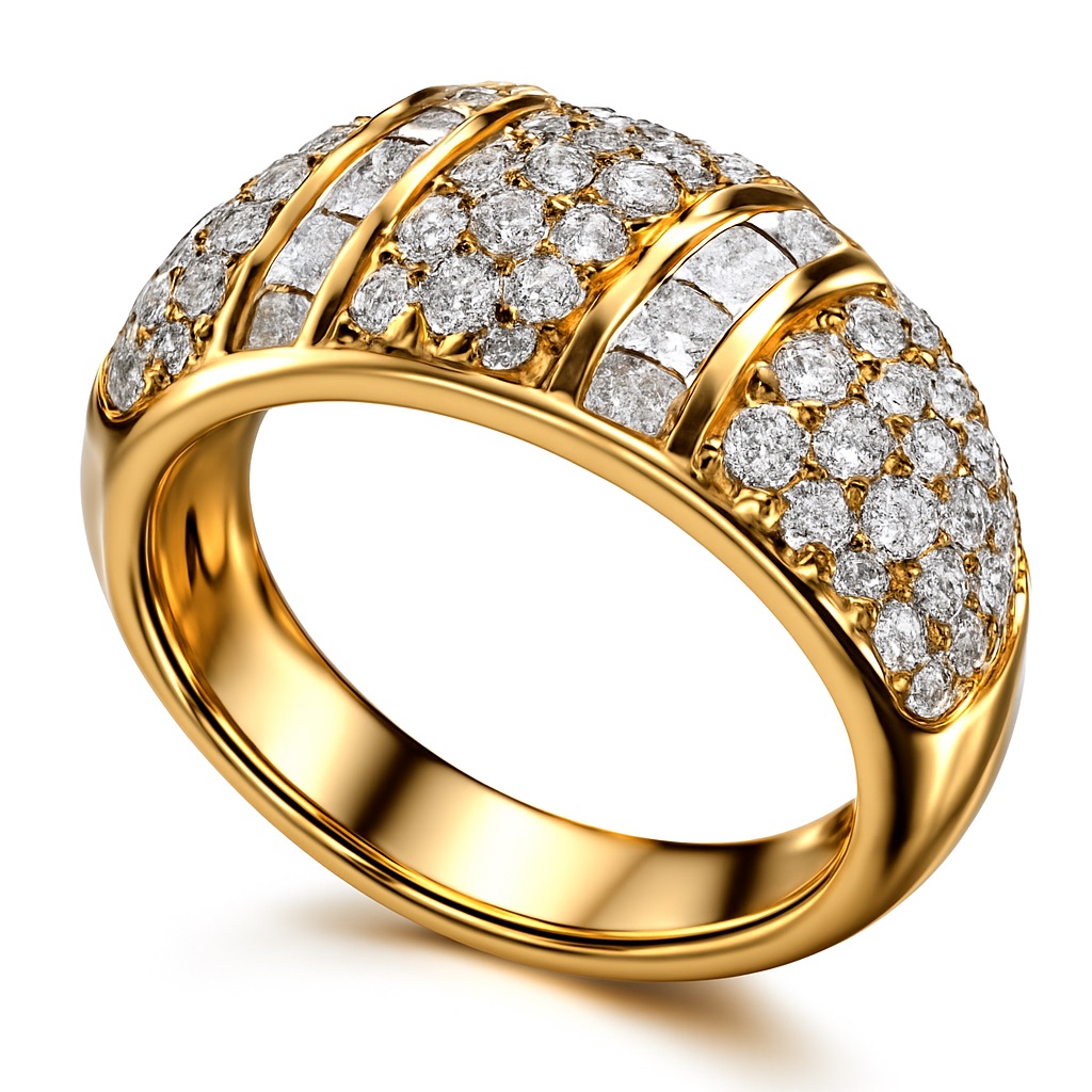 This Ring made in 18kt Yellow Gold & Diamond carat 1.03 Cts,& Diamond Pcs 84 , Gold Wt-7.24 Gms , Diamond color H-I With clarity I.