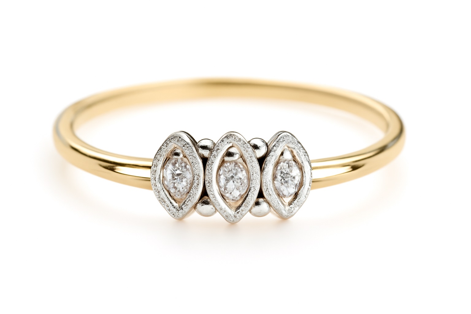 This Ring made in 18kt Yellow Gold & Diamond carat 0.06 Cts,& Diamond Pcs 3 , Gold Wt-1.25Gms , Diamond color J With clarity SI-I.