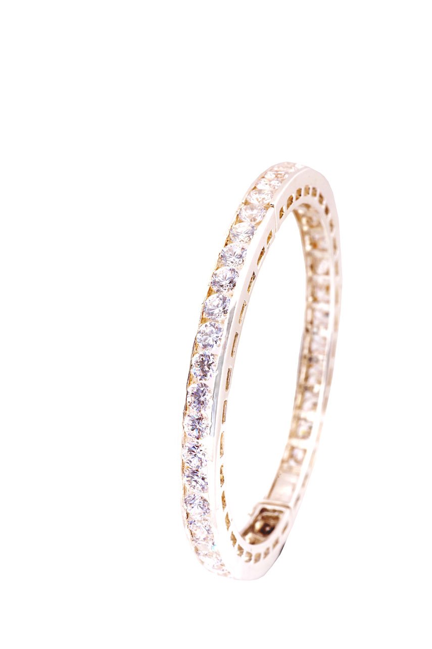 This bangle is studded with (cz)& Silver wt-32.10 Gms 51 Cz pcs This bangle has high end fashion design which has elegance and style that will add radiance to natural beauty of women.