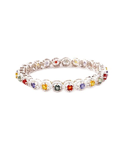 Stone Wt-10.80 Cts Stone Name-Multi Sapphhire This bangle is studded with (cz)& multi sapphire stone. This bangle has high end fashion design which has elegance and style that will add radiance to natural beauty of women.