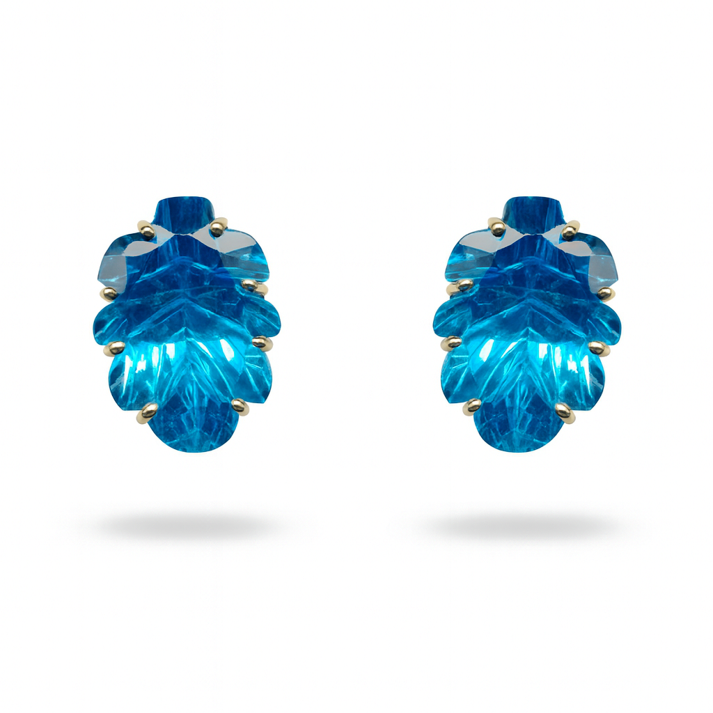 18 KT Gold Blue Topaz Leaf Stud Earrings