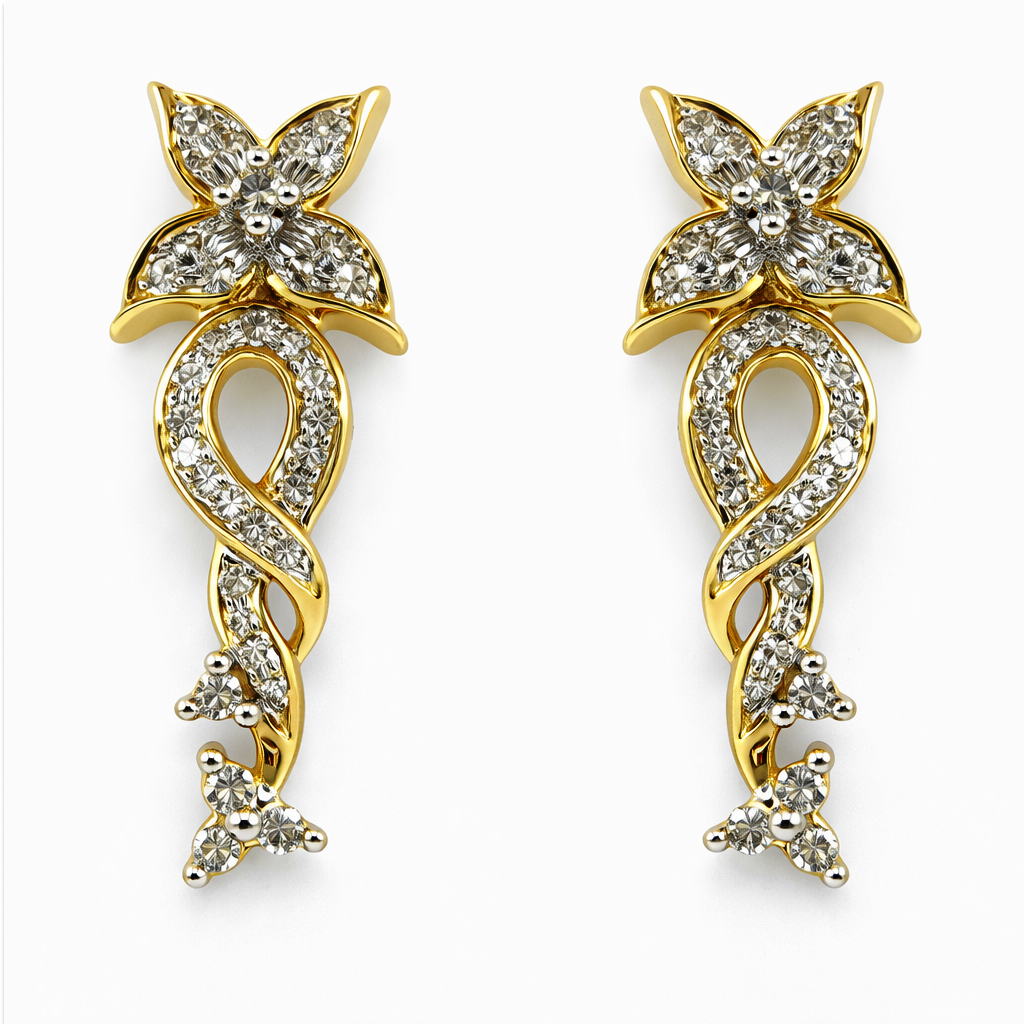 These classic drop earrings, made from 18 KT gold and featuring exquisite diamonds, embody timeless elegance with their graceful shape. They are suitable for formal events, celebrations, and for infusing everyday life with a touch of refined luxury.