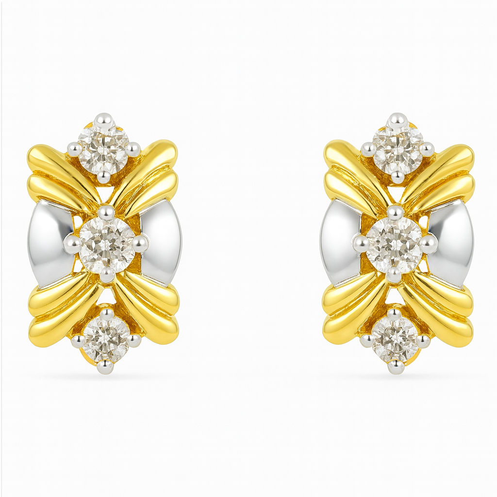 Fashioned in gleaming gold, these 18 KT Gold Diamond Elegant Stud Earrings present a chic sparkle with a graceful, polished appearance. They are created to pair beautifully with both special occasion outfits and modern casual styles.