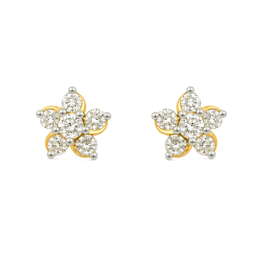 18 KT Gold Diamond Flower Stud Earrings