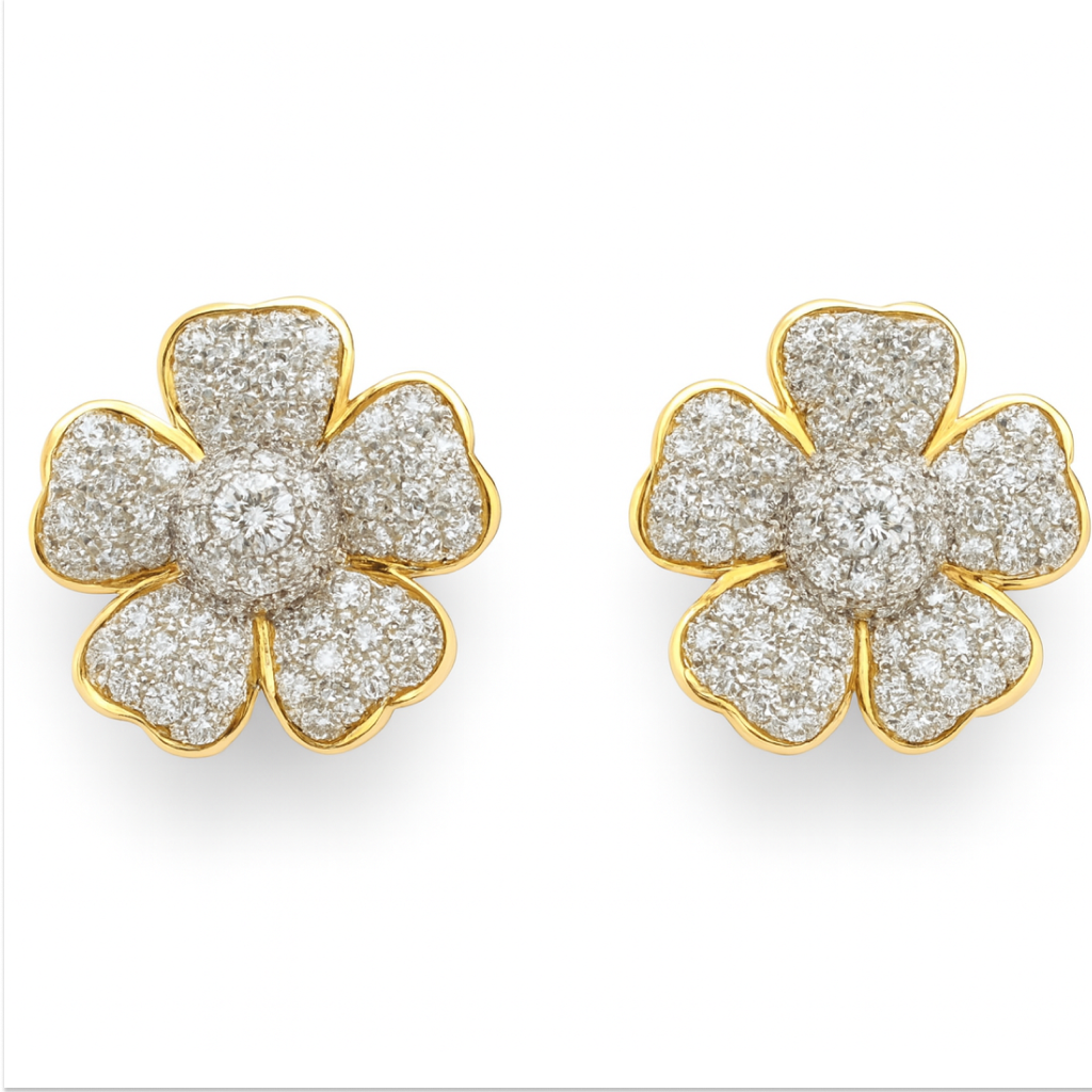 18 KT Gold Diamond Flower Stud Earrings