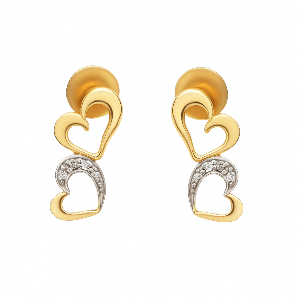 18 KT Gold Diamond Heart Studs