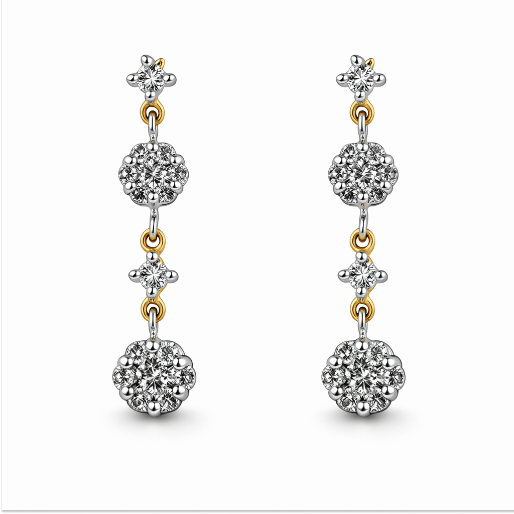 18 KT Gold Diamond Long Earrings