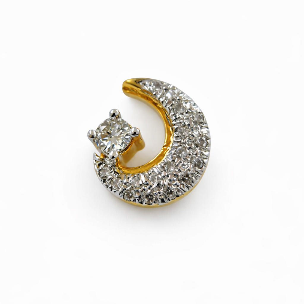 18 KT Gold Diamond Moon Pendant