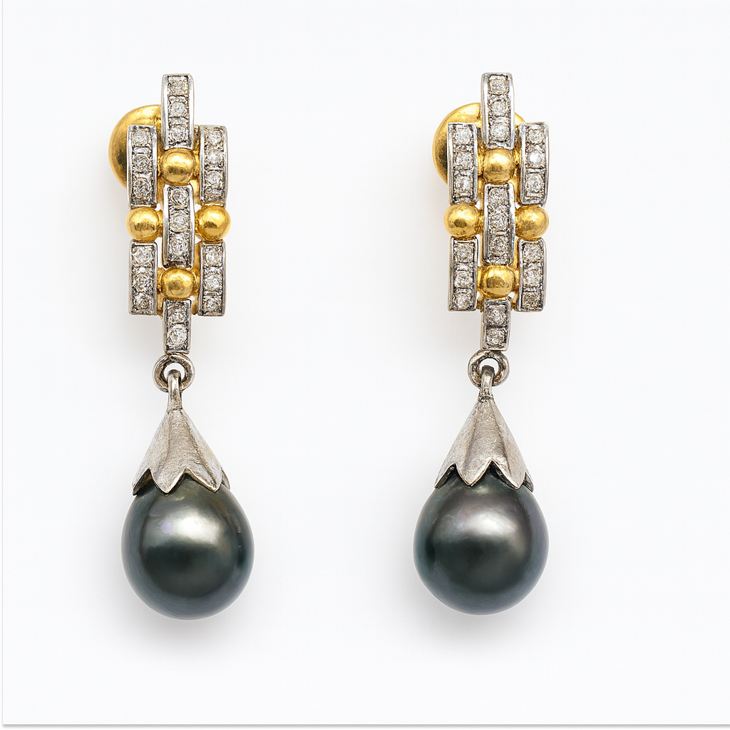 18 KT Gold Diamond Pearl Drop Earrings