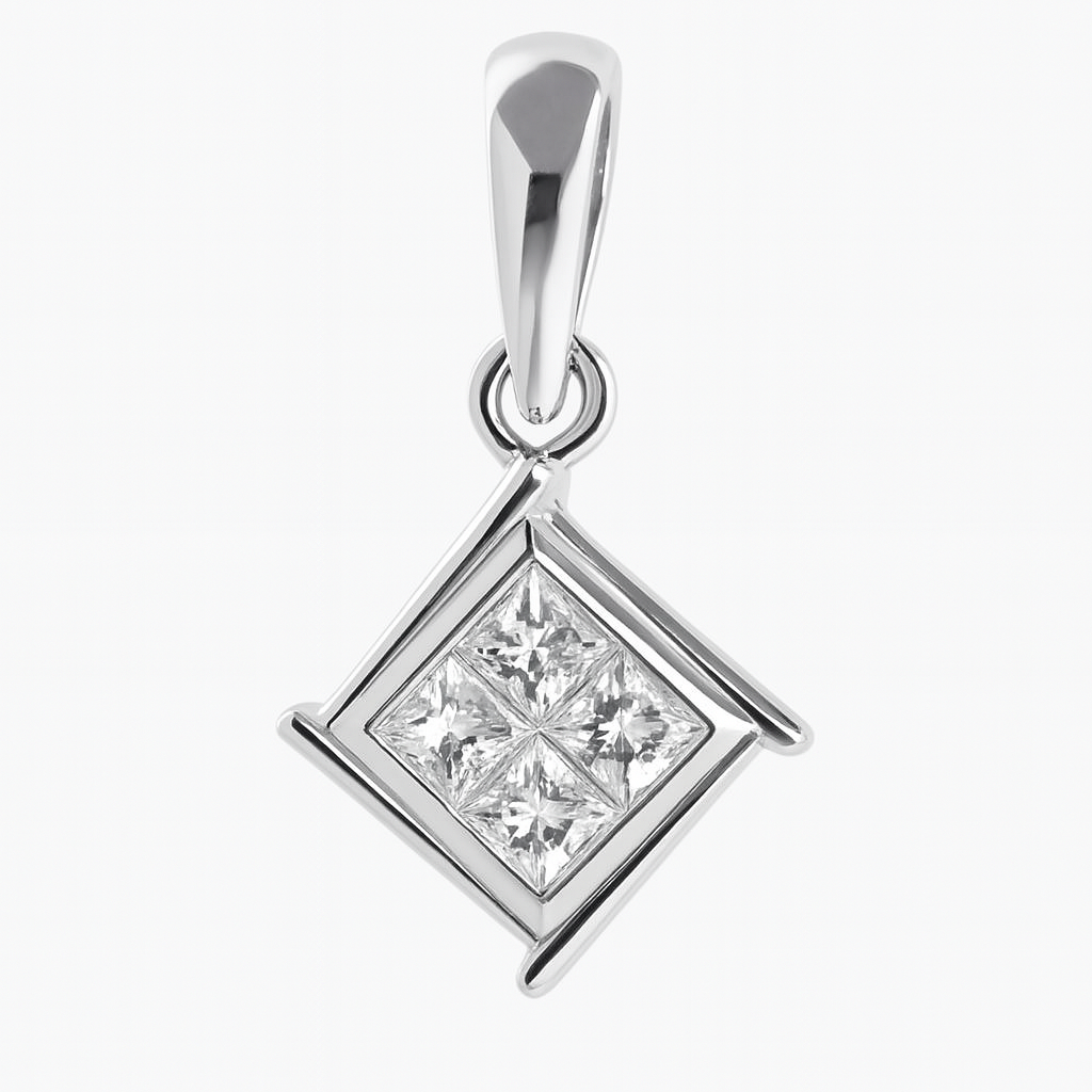 18 KT Gold Diamond Princess Square Pendant