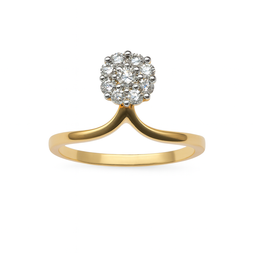 Made from 18 KT gold, this round cluster ring adorned with diamonds showcases a stunning display of shimmering stones that exude everlasting beauty. Ideal for special events or for enhancing your daily style, it represents elegance and exceptional artistry.