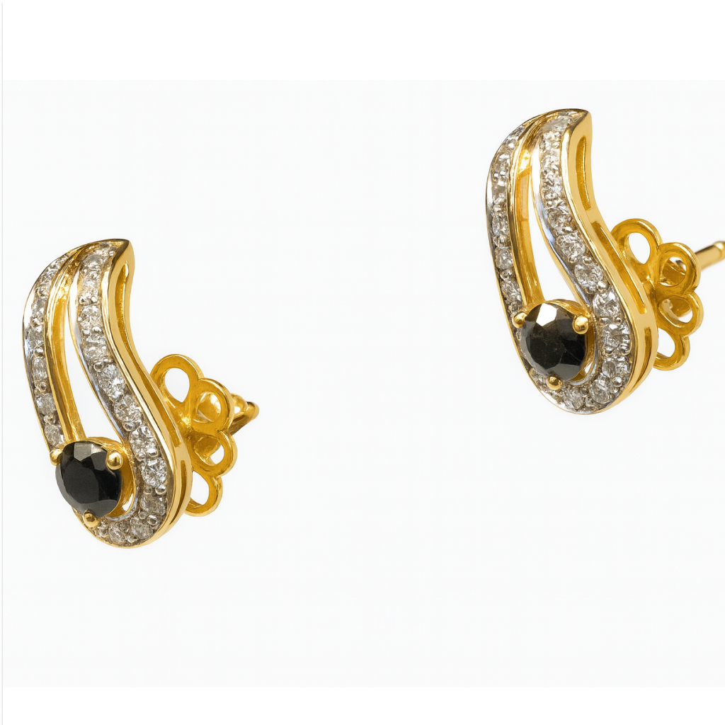 Be the first to review “18 KT Gold Elegant Black Diamond Stud Earrings”