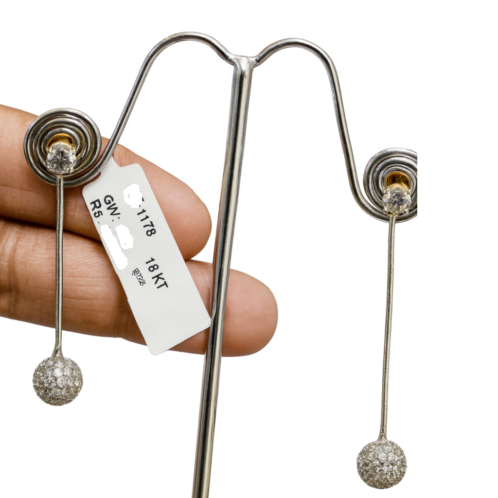 Present a graceful look with these 18 KT gold long earrings embellished with diamonds, designed to highlight movement with their shimmering brilliance. These diamond long earrings in 18 KT gold are perfect for evening and festive wear, adding a sophisticated flair to your appearance.