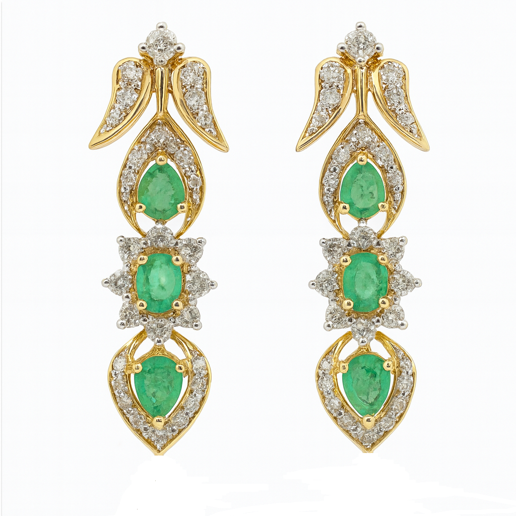 18 KT Gold Emerald & Diamond Dangler Earrings