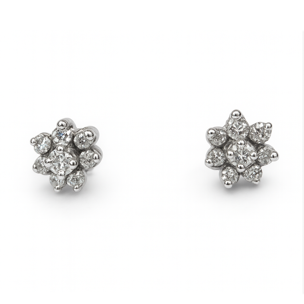 18 KT Gold Floral Diamond Stud Earrings