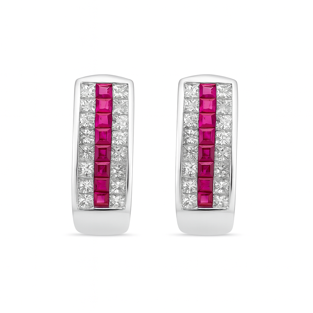 Enhance your style with these stunning 18 KT gold ruby diamond earrings, showcasing lively rubies complemented by dazzling diamonds.Ideal for both festive occasions and evening events, these ruby diamond earrings in 18 KT gold add a touch of sophistication and vibrant color to any outfit.