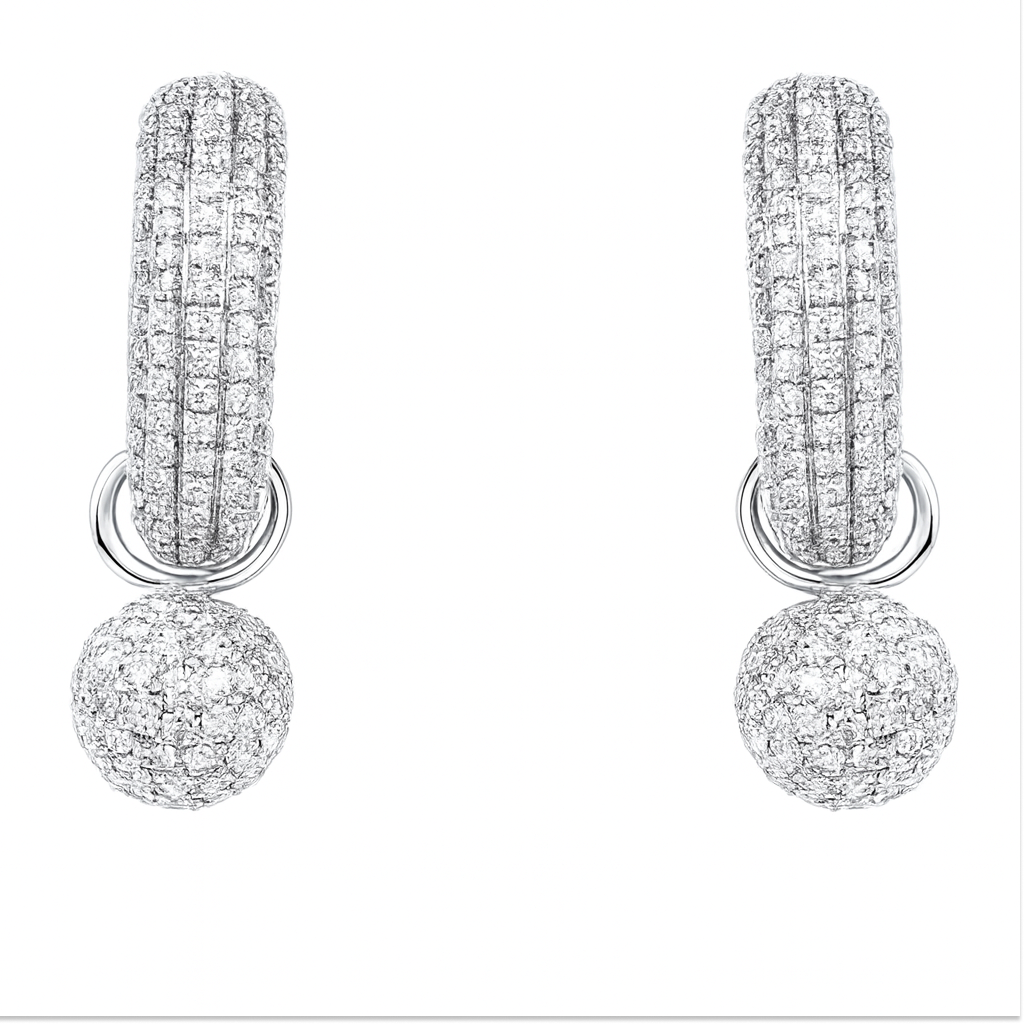 18 KT White Gold Diamond Drop Earrings | Pave Set Diamonds |