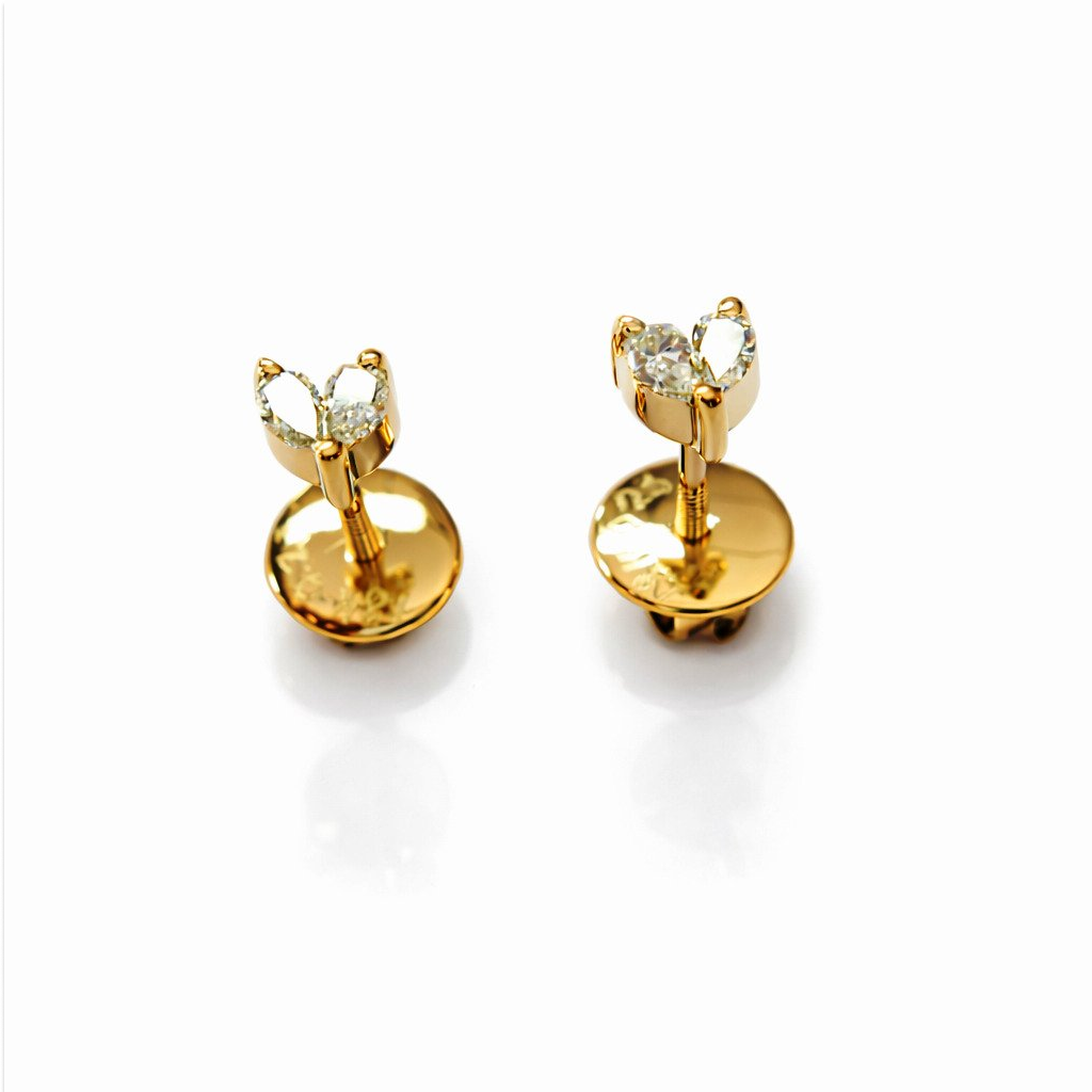 18 KT Yellow Gold Natural Diamond Wedding Wear Stud Earrings