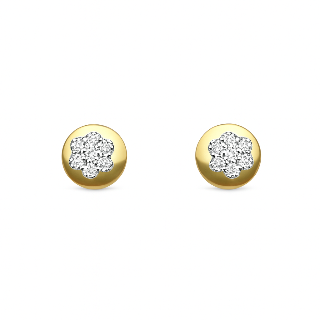 Experience the elegance of these 18K yellow gold diamond floral stud earrings, which beautifully blend classic floral designs with sparkling diamond details. Perfect for a thoughtful gift or as a personal style statement.