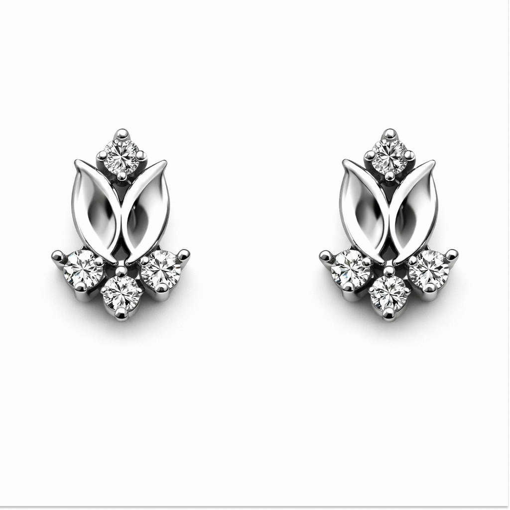 Classic Leaf 18 KT Gold Diamond Stud Earrings