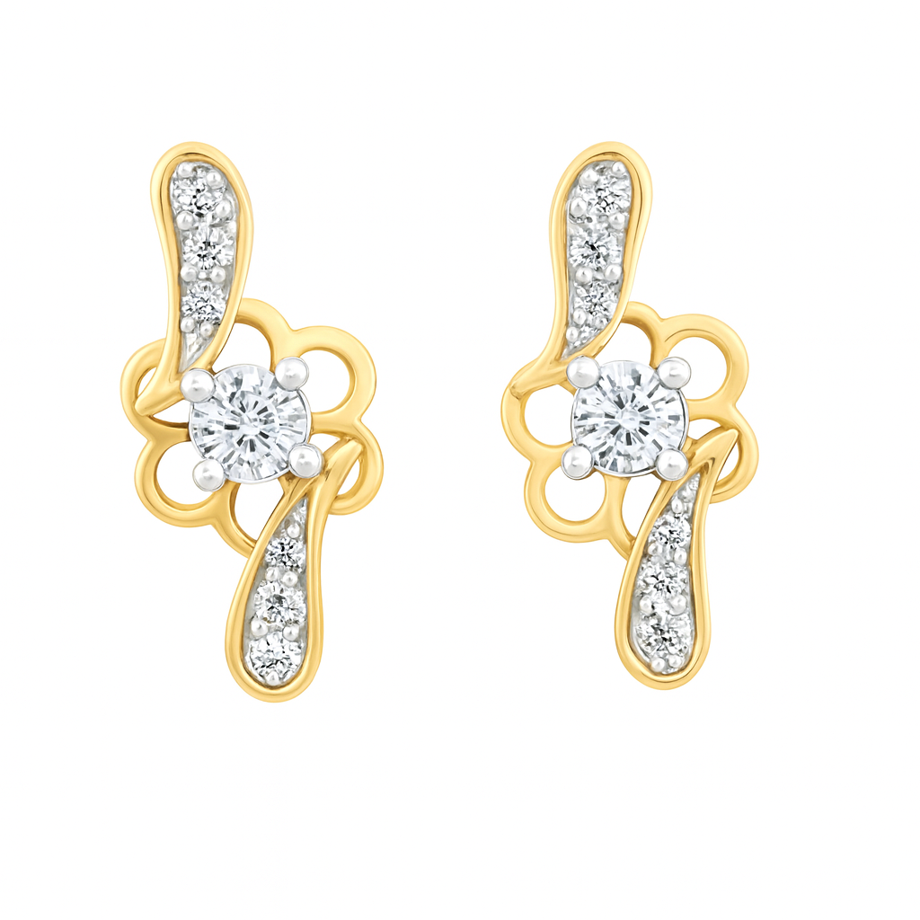 Floral Swirl 18 KT Gold Diamond Stud Earrings